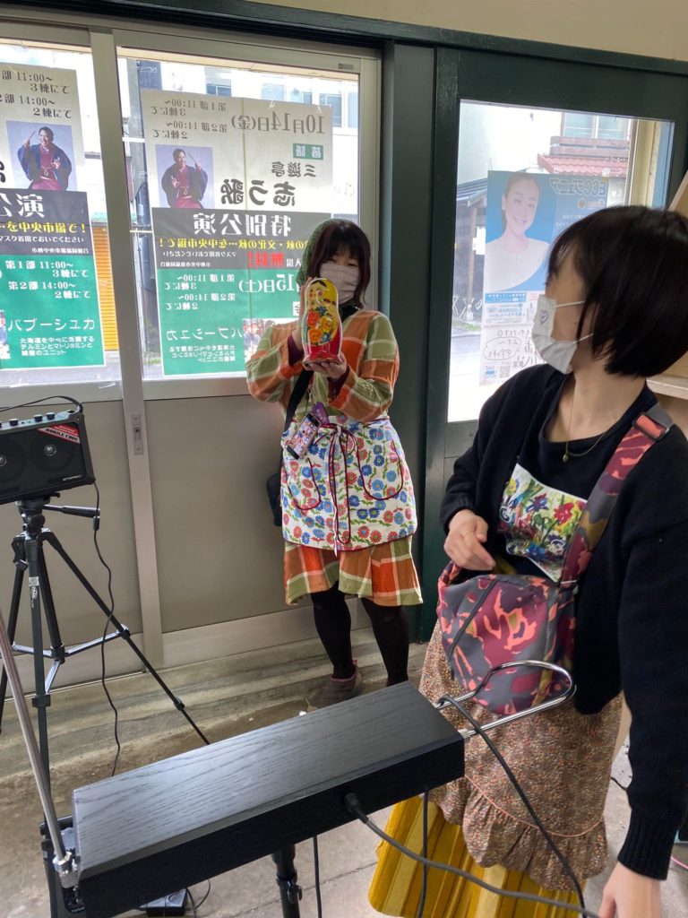 アコーディオン特有のどこか懐かしい響きが市場に響いて、見に来てくれるお客さんもたくさんいました!