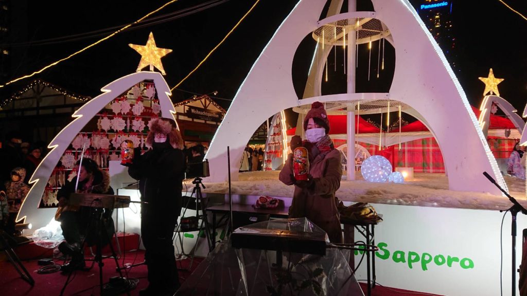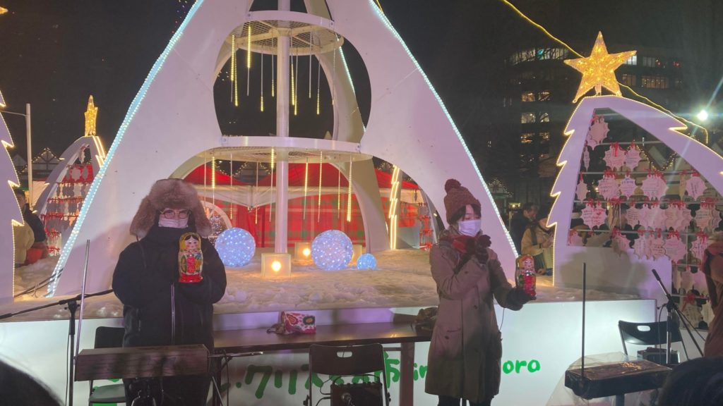 「21st ミュンヘン・クリスマス市in Sapporo」のステージでバブーシュカがクリスマスソングを合奏しました。