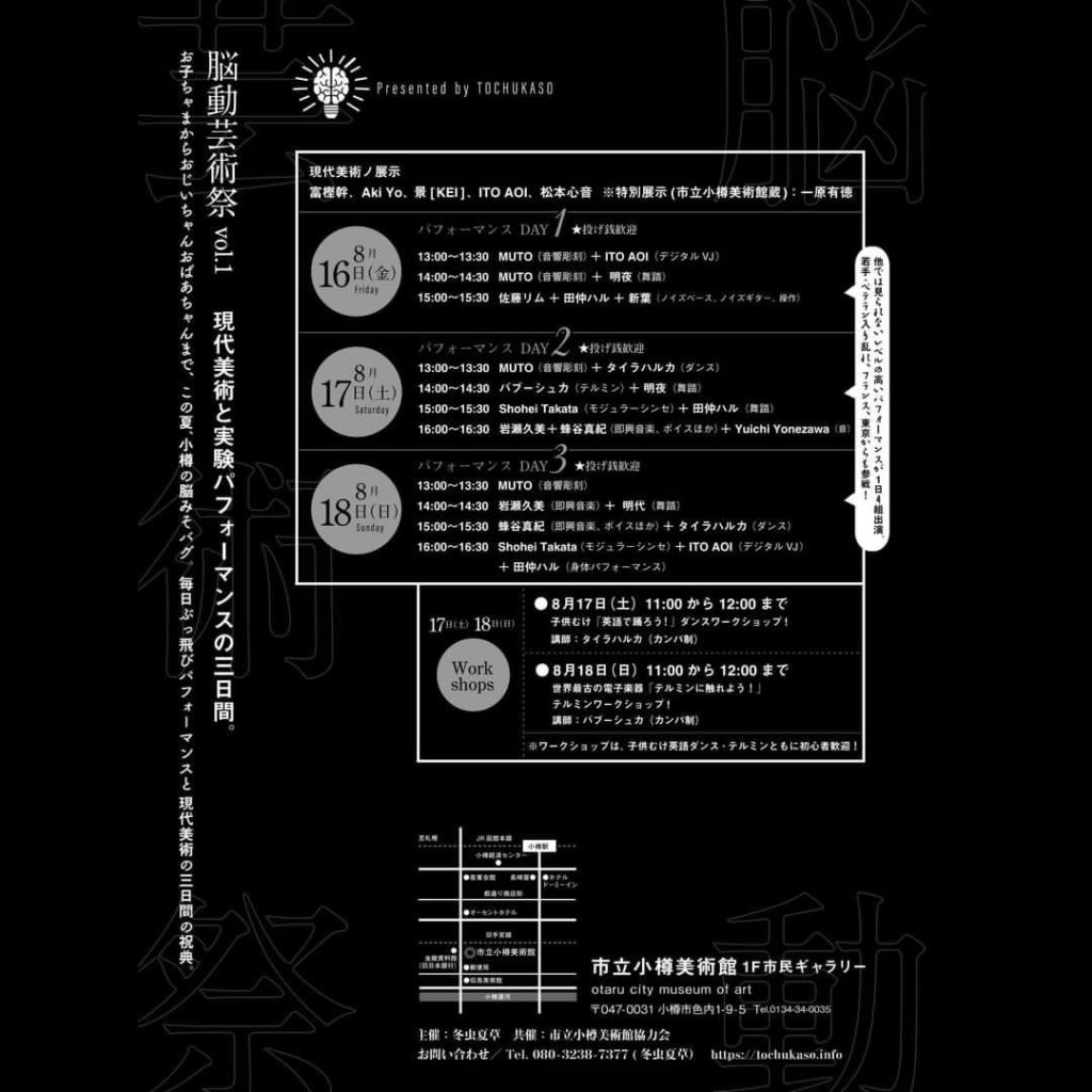 小樽の水煙草喫茶 冬虫夏草さん主催のダンスパフォーマンスを主体としたイベント「脳動芸術祭」(2024 8.16~18)にバブーシュカのマミミンとミドーリンが2日間参加させていただける事になりました!すごーい!!