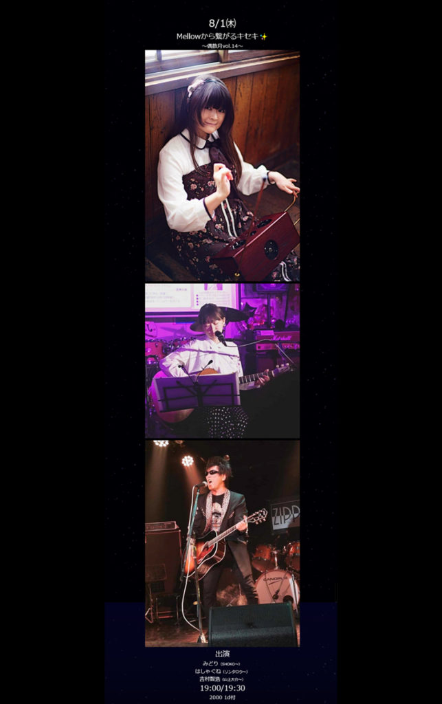 ライブやイベントの告知です。