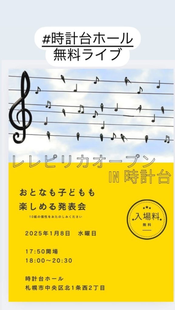 2025年1月8日(水)時計台ホールで開催されるレレピリカオープンにミドーリンもテルミンで参加します。