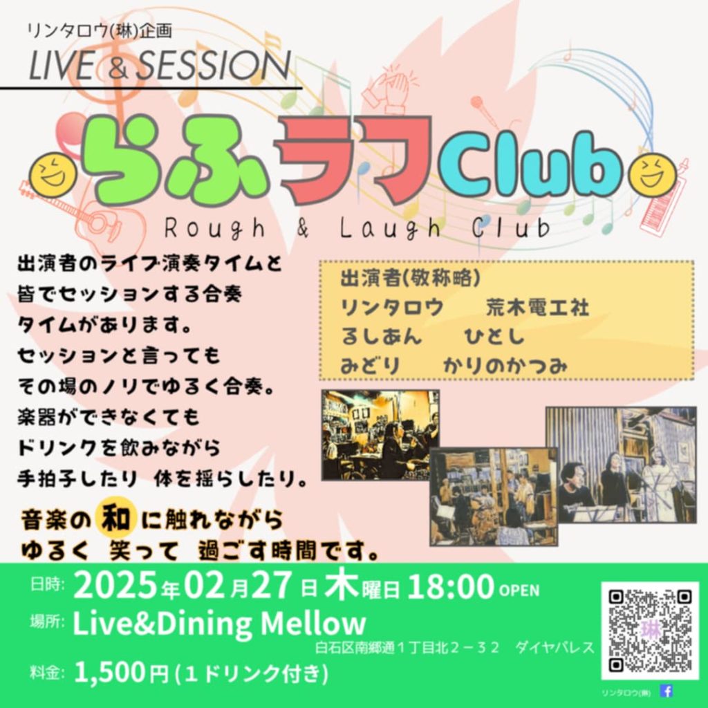 この企画は出演者が次の出演者(お友達)を紹介してつなげていくライブイベントだそうです!今回はマンドリン・ウクレレ奏者のShokoちゃんに紹介してもらいました(^^♪
