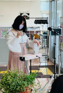 せっかく来たのでコメンテーターのアンヌ 遙香さんにテルミンの演奏方法を簡単にレクチャーして、スタジオの隅っこで番組の見学をさせてもらいました。