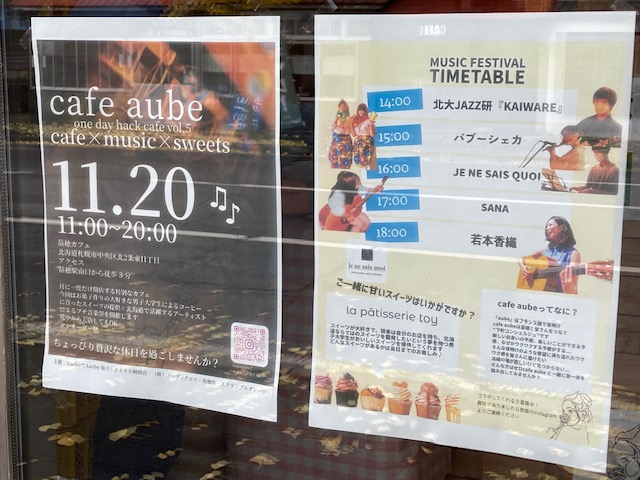 今回お声がけいただいたso-taさん、間借りカフェAubeの山口耕平さん、ご一緒させていただいた北大JAZZ研の皆さん、SANAさん、若本香織さん、ありがとうございます。