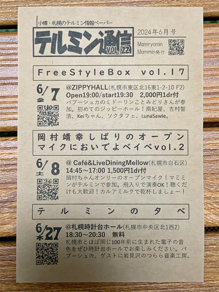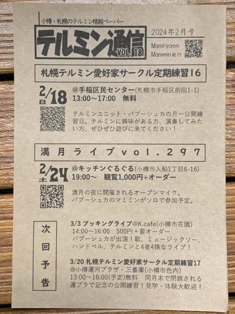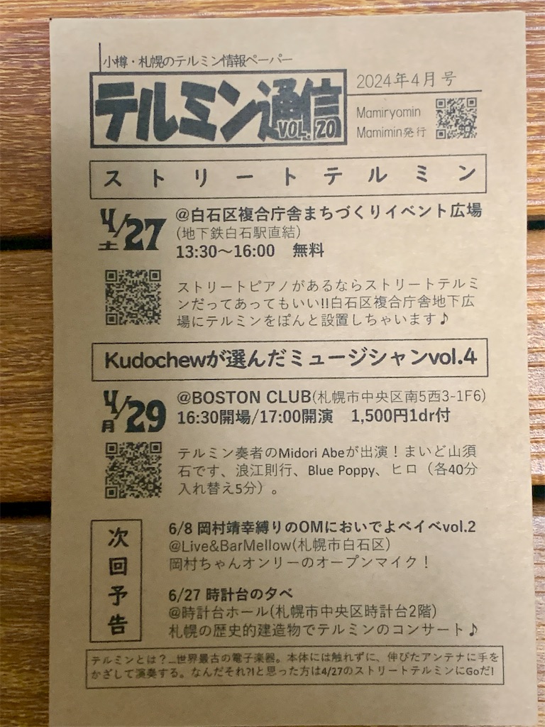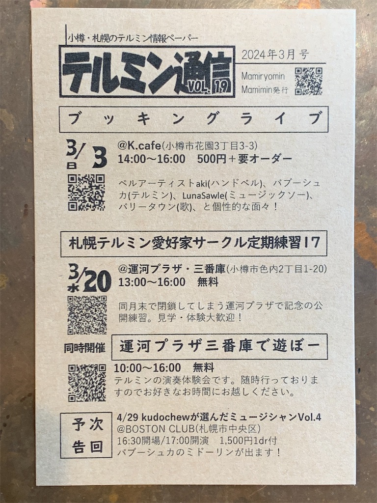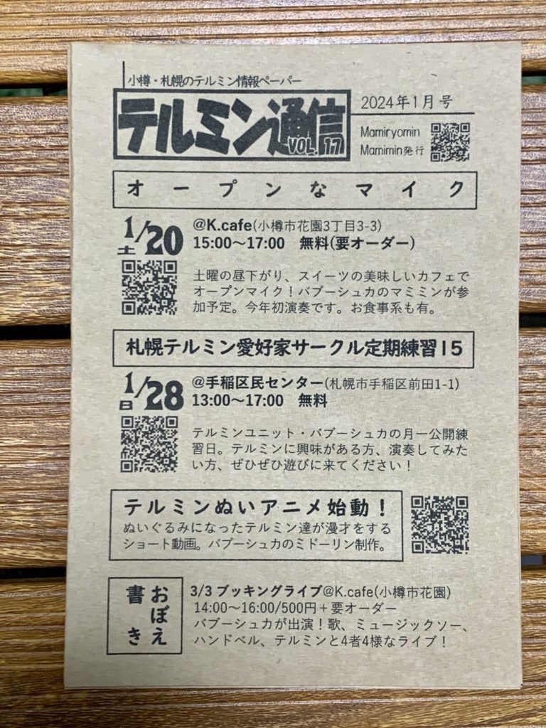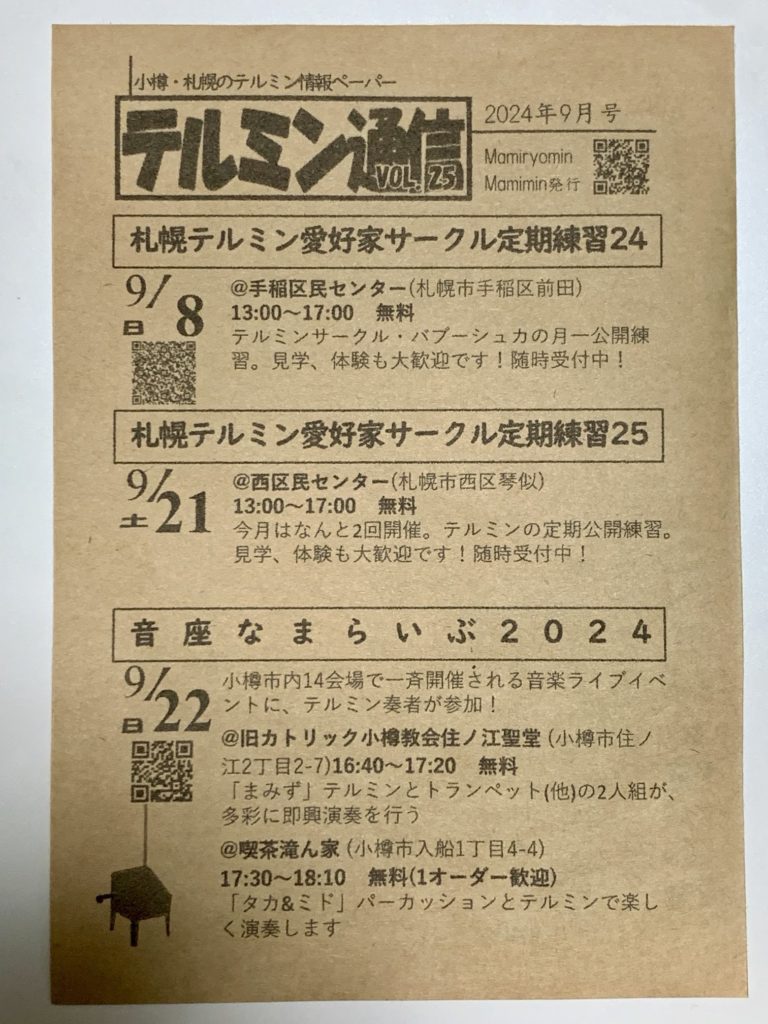 バブーシュカのメンバー、マミミンが発行している、小樽近郊のテルミン関連情報を発信するフリーペーパー。