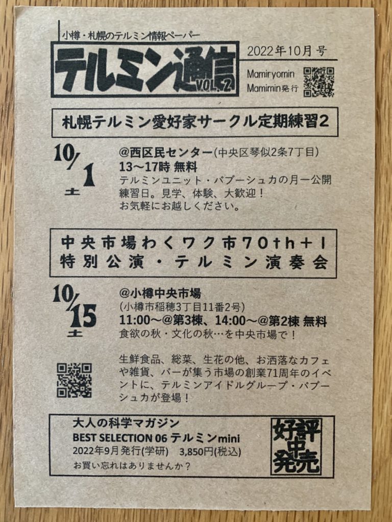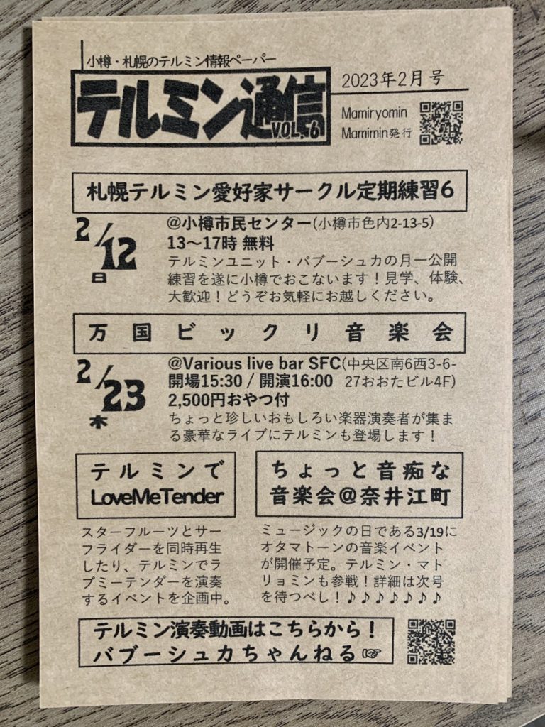 マミミンが作っているテルミン情報ペーパー「テルミン通信」せっかくなので今後はブログでも紹介します!