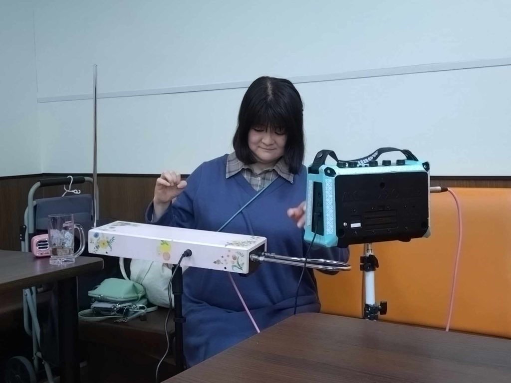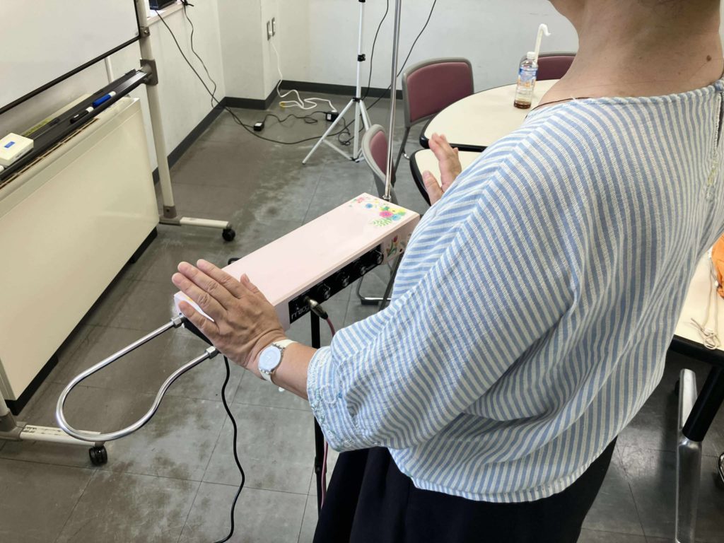 普段「手を触れない」で演奏する我々、お互いの手に触れて音を鳴らす体験に思わず笑いが。Playtron何かに使えたらいいな~。