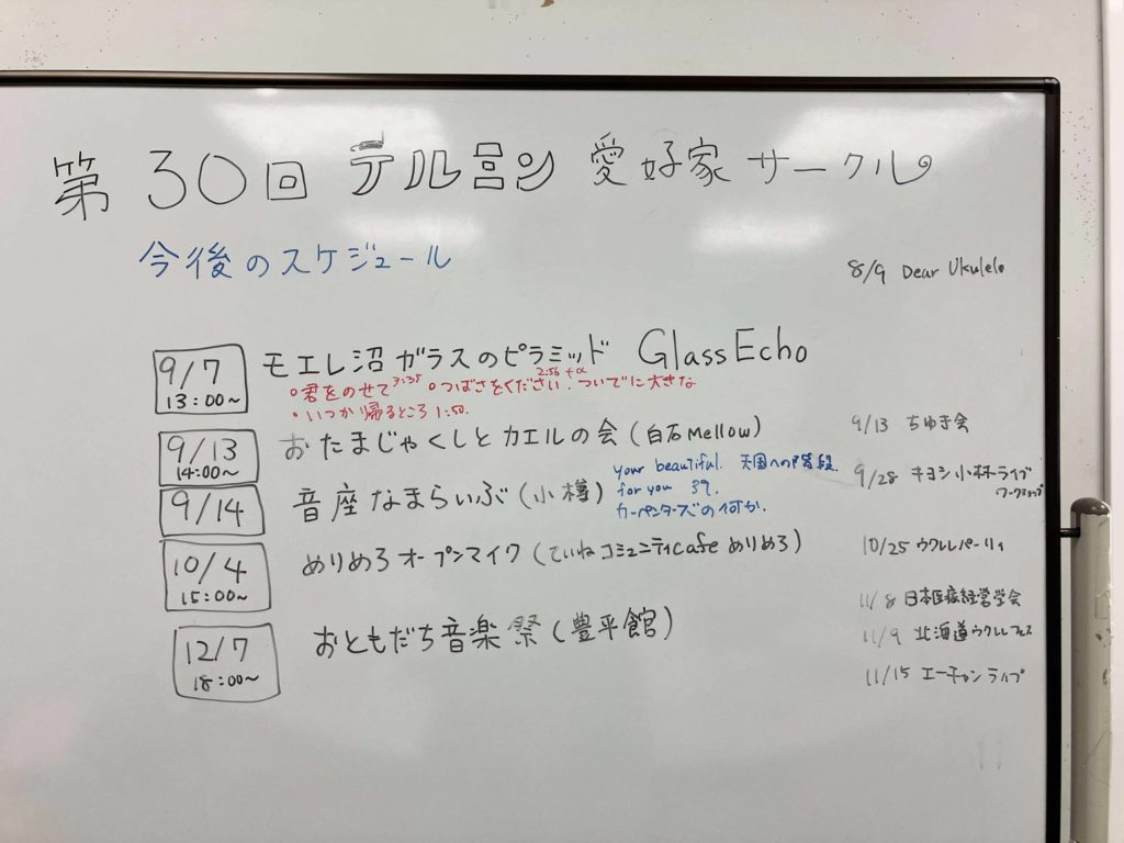 今回は今後のスケジュールの洗い出しと、9月モエレ沼ガラスのピラミッド「Glass Echo」の選曲をメインに。